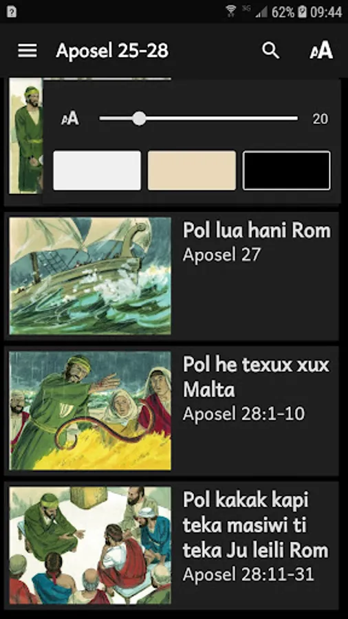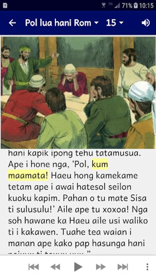 ✔ Audio is synced to the text, highlighting it phrase by phrase as the audio plays, allowing the user to read and listen to the Bible at the same time