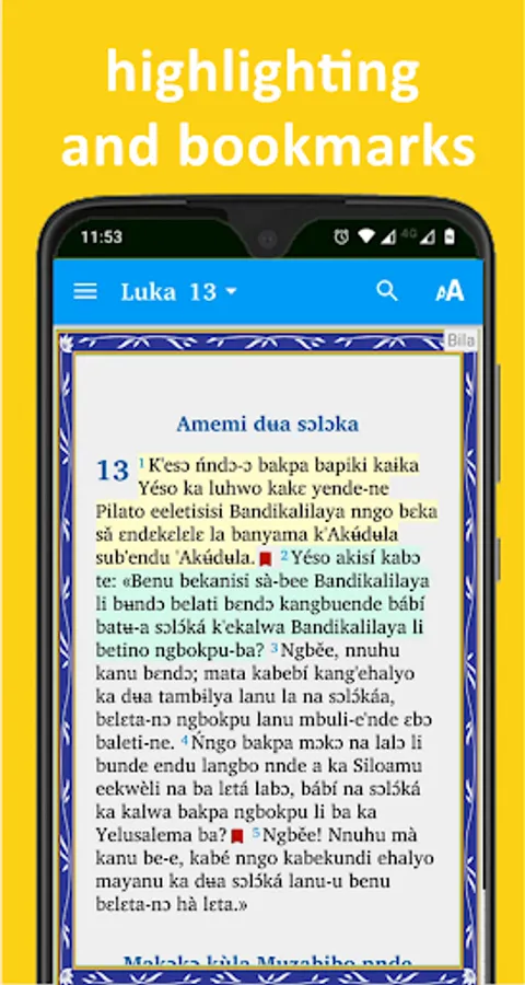 "Bila Bible" is an app for reading and studying the Bible in the Kubila language ( also known as Bila, Ebila, Forest Bira, KiBila, Western Bila) spoken in the Democratic Republic of Congo. The Bible is in process of being translated into Bila. More Bible books in Bila will be added to this app as they become available. The French Bible "Français courant 97' and Swahili Bible "Toleo Wazi Neno" are also included in the application.