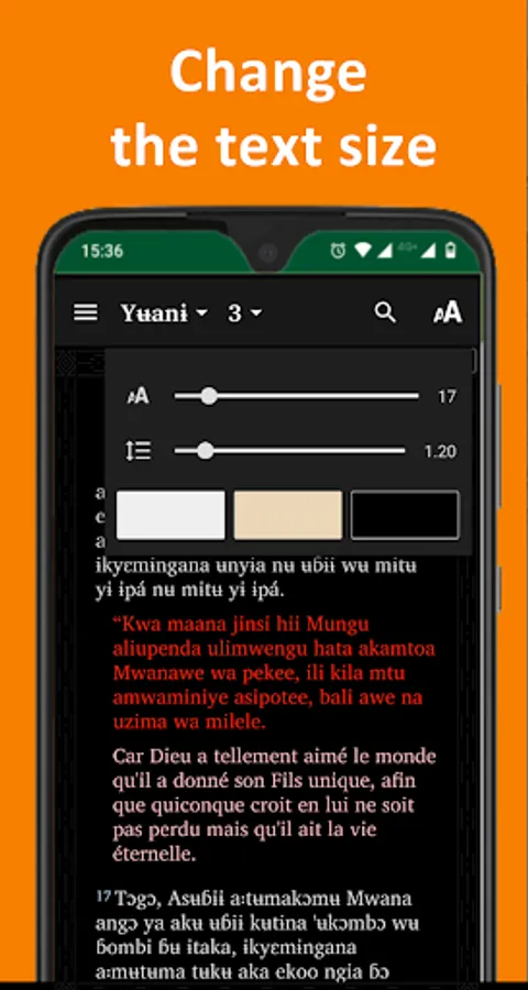 • Read the New Testament text while listening to the audio: each phrase is highlighted as the audio is playing.