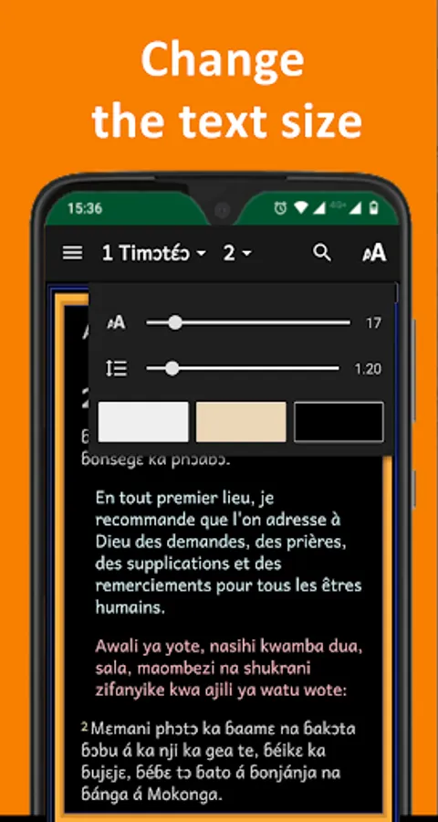 • Read the New Testament text while listening to the audio: each phrase is highlighted as the audio is playing