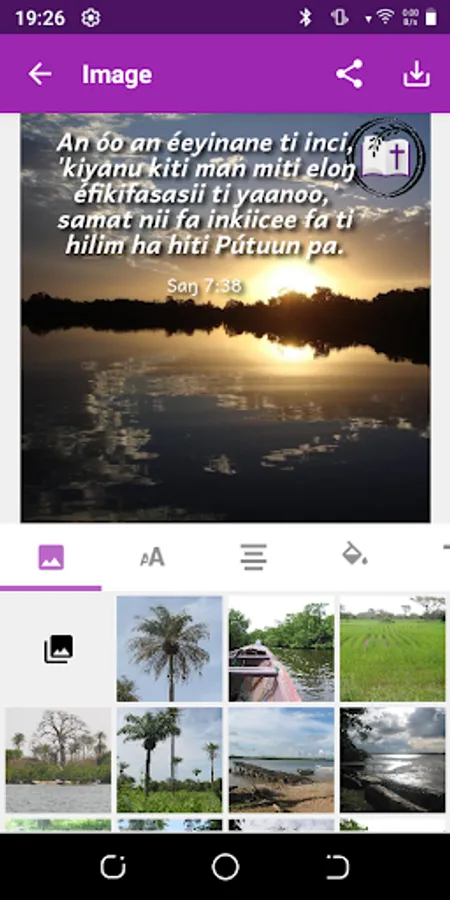 • Share verses and photos with your friends via Facebook, WhatsApp etc.
