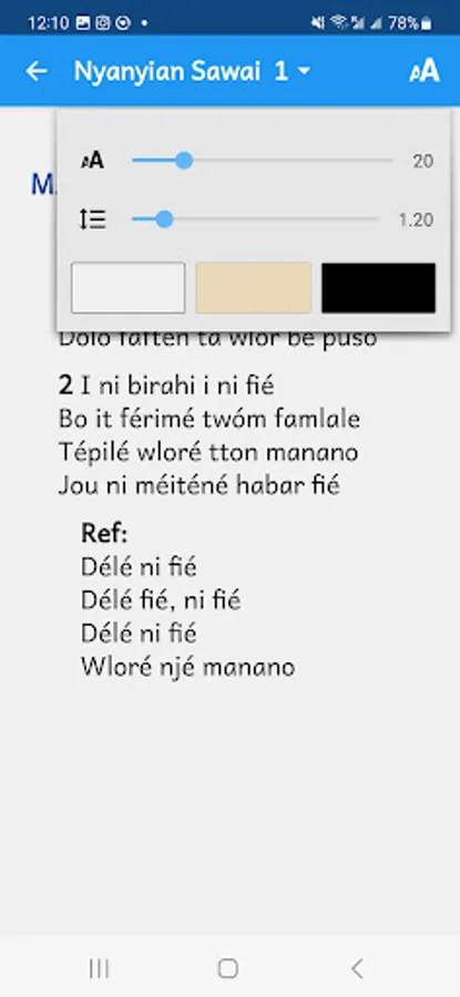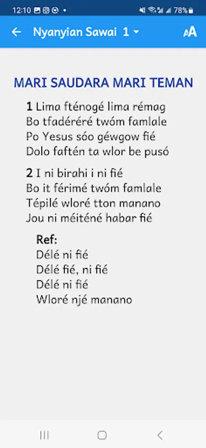 Nyanyian-nyanyian dalam Bahasa Sawai. Silakan lihat satu-satu, boleh juga cari lagu tertentu dengan pakai