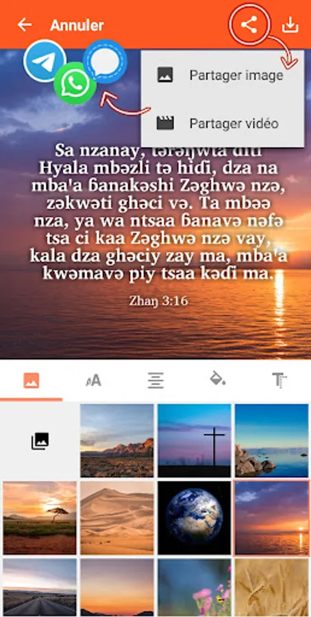 ∙ Utilisez l'éditeur VERSET SUR IMAGE pour créer de belles images à partager avec votre famille et vos amis. Aussi avec AUDIO!