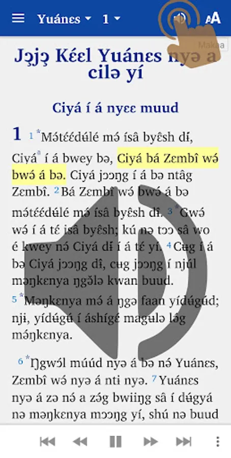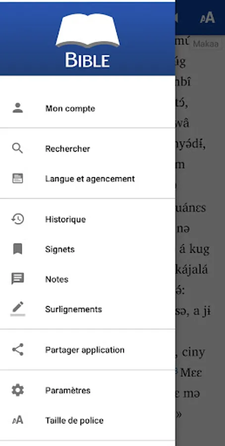 "Makaa Bible" is an app for reading, listening and studying the Bible in the Makaa language * (spoken in the eastern region of Cameroon). The French Bible Louis Segond 1910 is also included in the application.