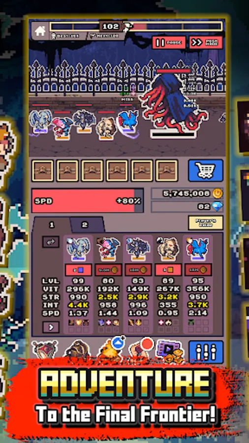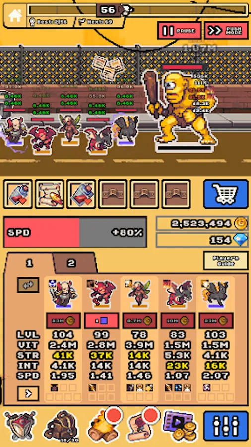 After you prestige, your monster team can enter the Tower to battle legendary heroes and epic monsters. Defeat every monster team in battle to climb the tower. Collect gems and monster rewards for every victory.