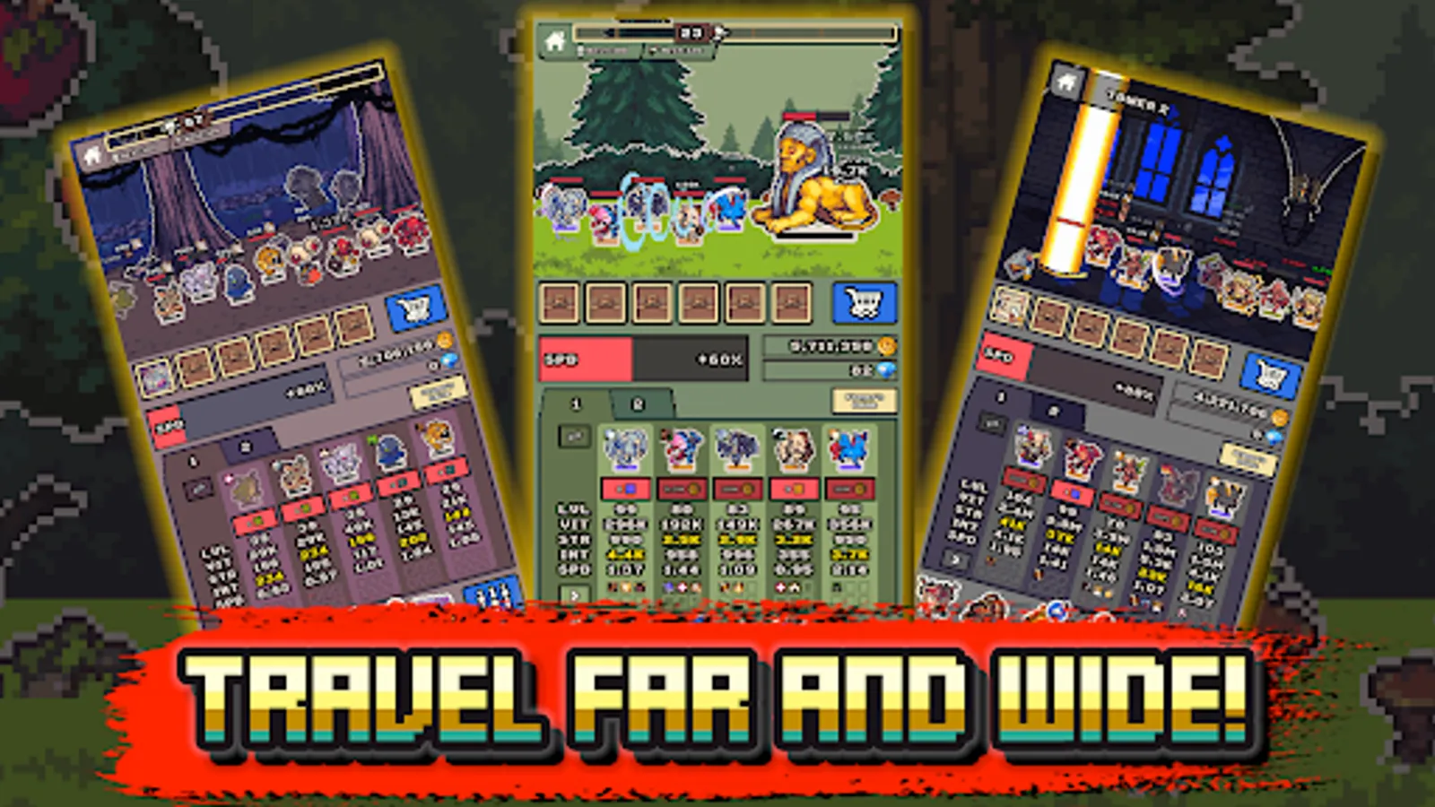 The idle adventure never ends. With incremental mechanics and no damage, distance, or level caps, this endless auto idle rpg game is not your average monster collecting game. Monsters adventure through the frontier and win monster battles to collect monsters and gold to bring back to your base. Discover new areas and strategies.