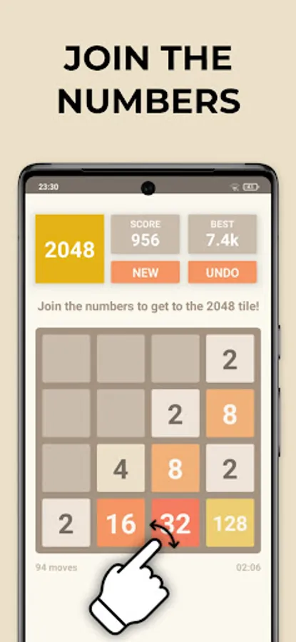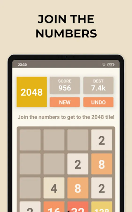2048 is a simple and addictive puzzle game. Even if you don't like numbers, you will love this game. It is played on a 4x4 grid simply by swiping up, down, right, or left. Each time you swipe, all tiles move in that direction. Tiles with the same value that collide with each other are merged. For example, if you joined 2 tiles with the number 2, they will become 4, 2 tiles with 4 will become 8, and so on. The point of the game is to get the 2048 tile!