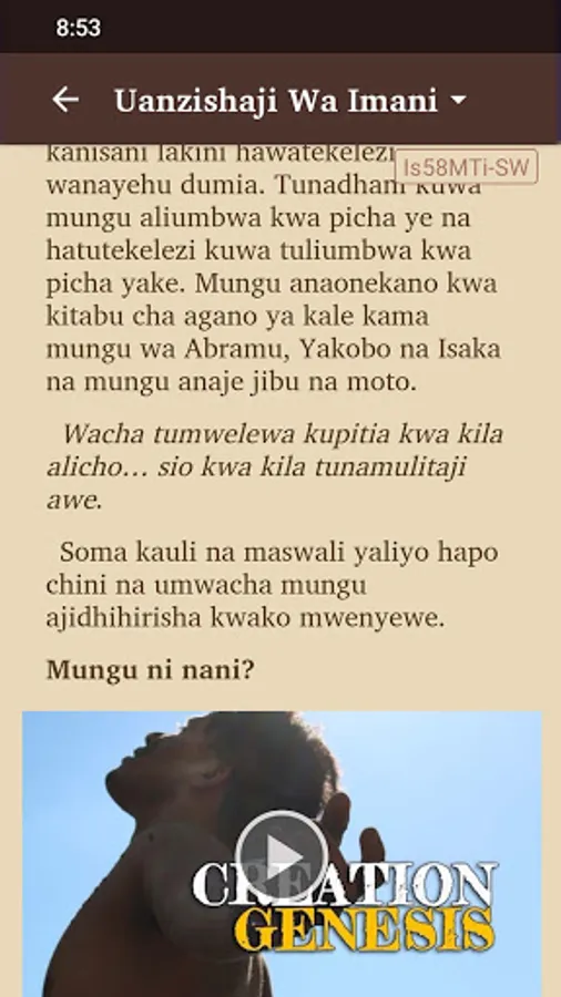 Enjoy this Swahili and English versatile app for personal devotion, one-on-one mentoring and group Bible study. Easy to read, effective and powerful, the Isaiah 58 MTi app is must have for any believer!