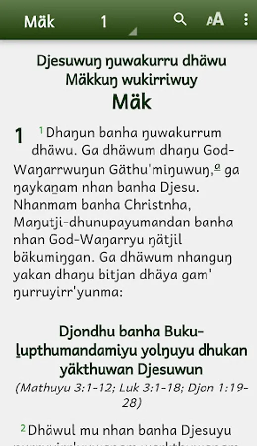 The Gospel of Mark in the Dhuwa-Dhaŋu'mi language is