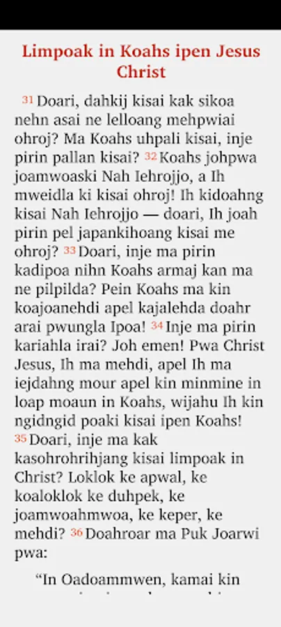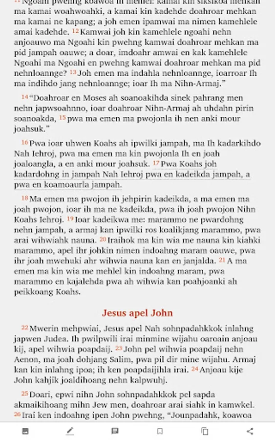 This App contains Bible Books of the Mokilese translation that have been reviewed and are ready for evaluation by the community. It is a work in progress. Expect to find errors.
