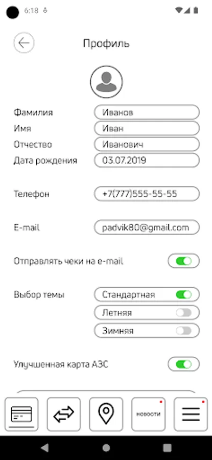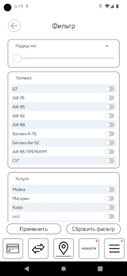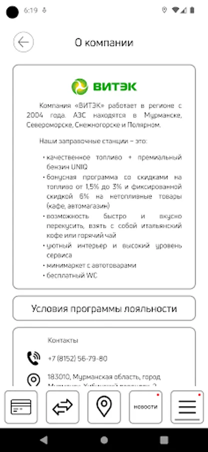 "Mobile application "Gas station VITEK" is intended for individuals and allows you to: