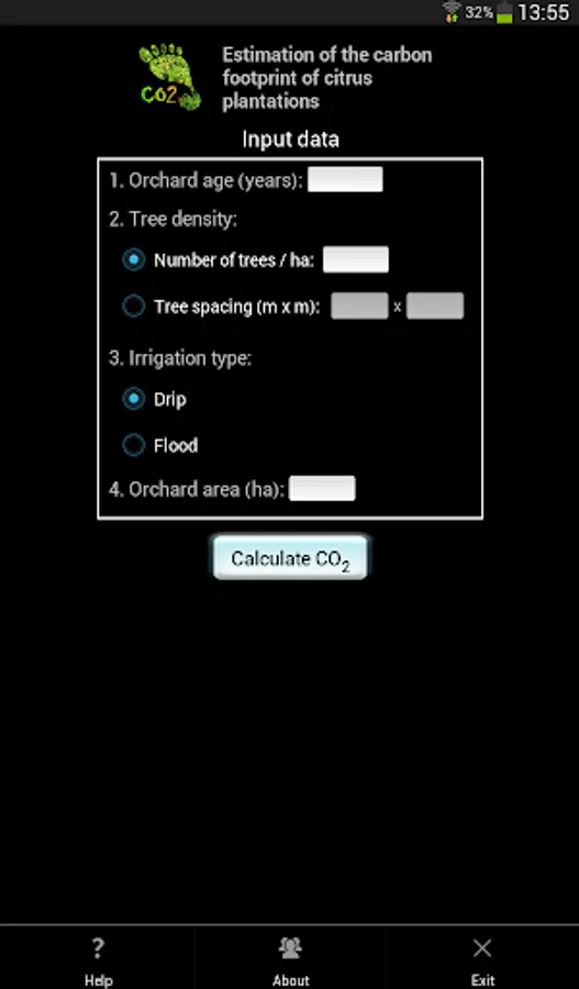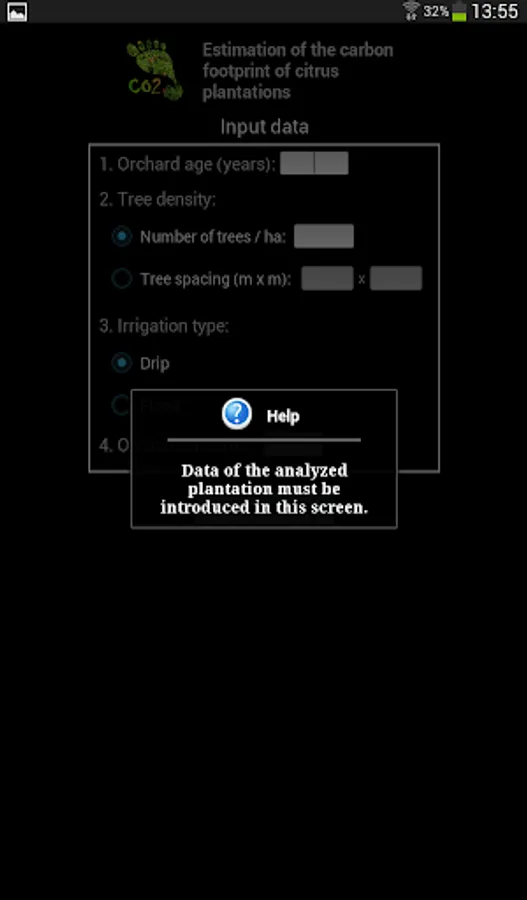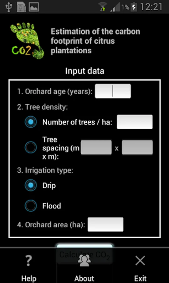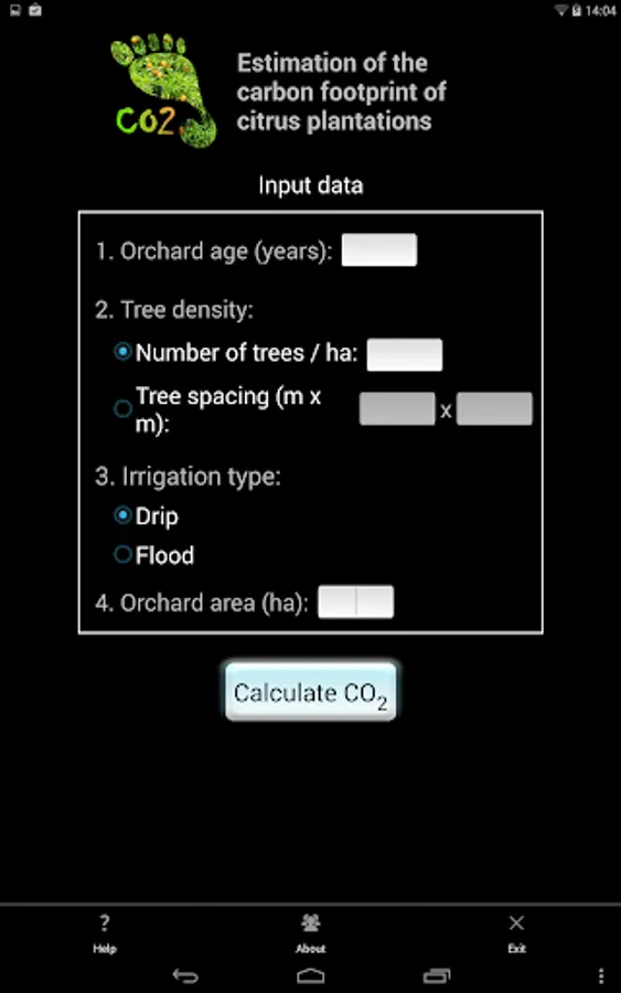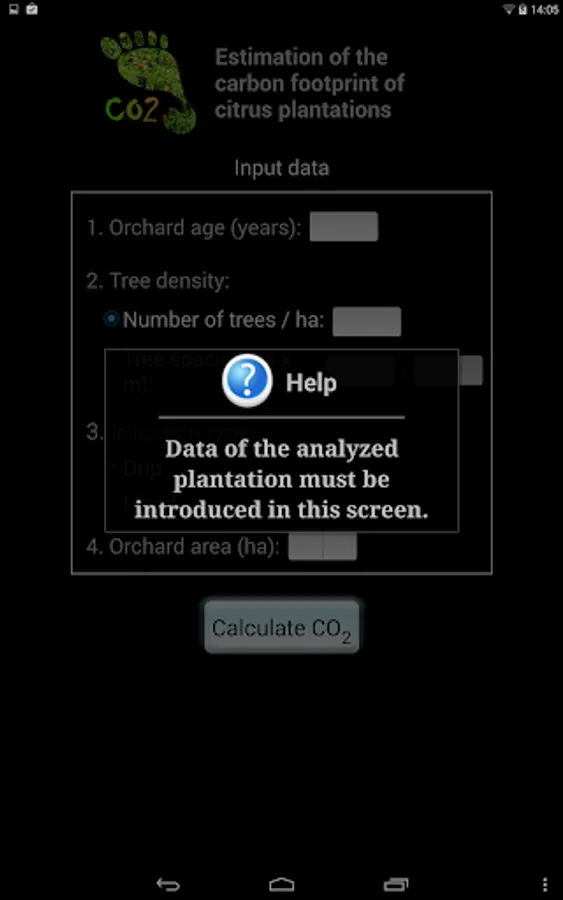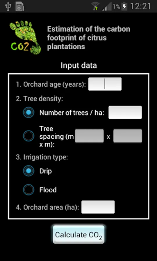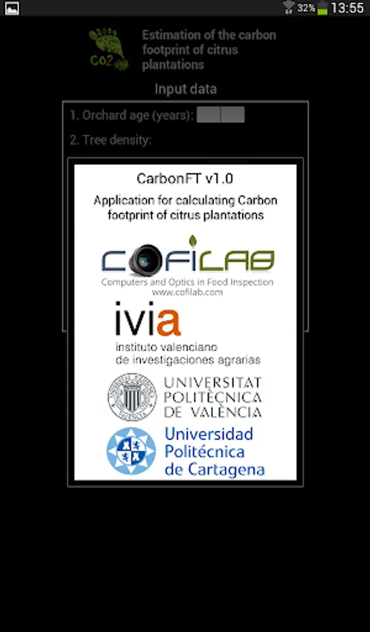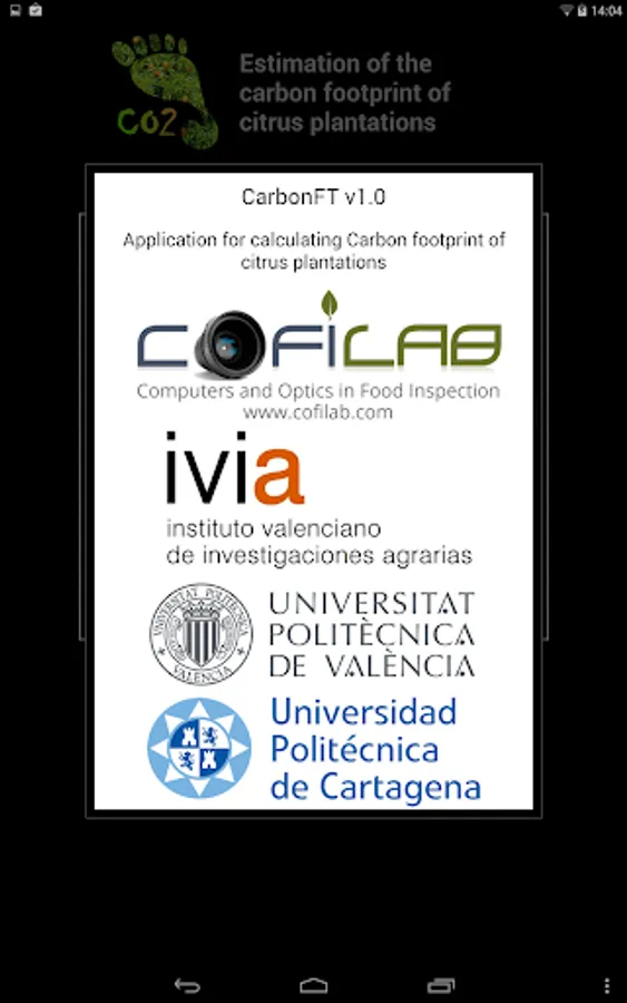 CarbonFT permits to calculate Carbon footprint of citrus plantations by using a mobile device. For this purpose the application requires to introduce several data about the plantation to be analized: