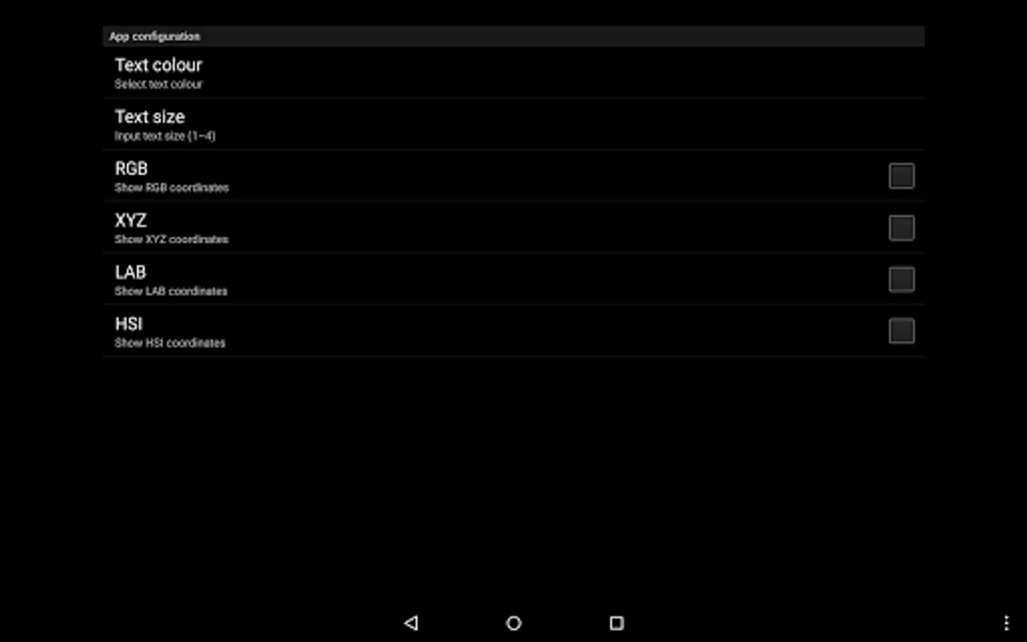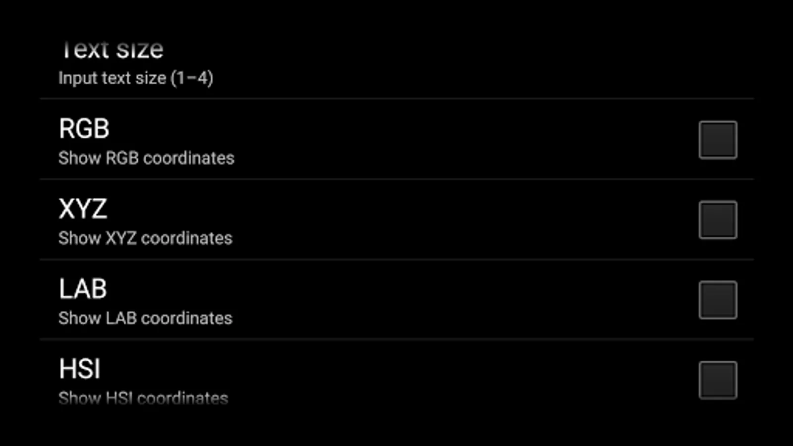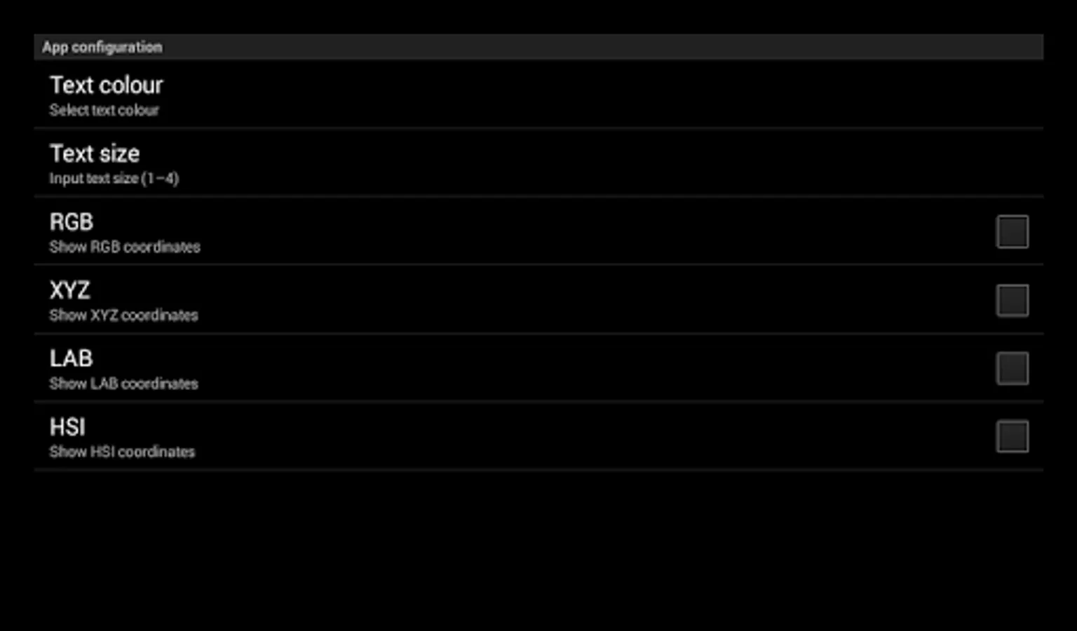 - In Preferences, application can be configured to modify the text parameters or to select the different color spaces to show.