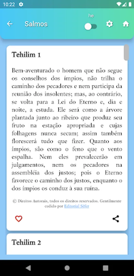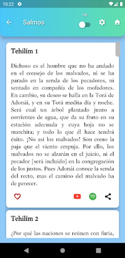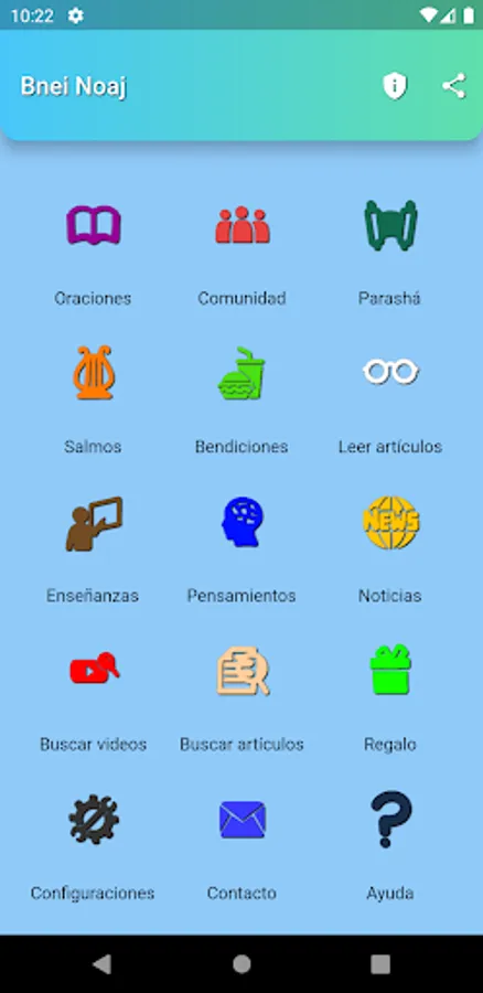 This app contains some study materials for Bnei Noach. It includes a prayer book, psalms in Spanish, daily thoughts, articles of general interest, and a description of all the sections of the Torah, with different teachings.