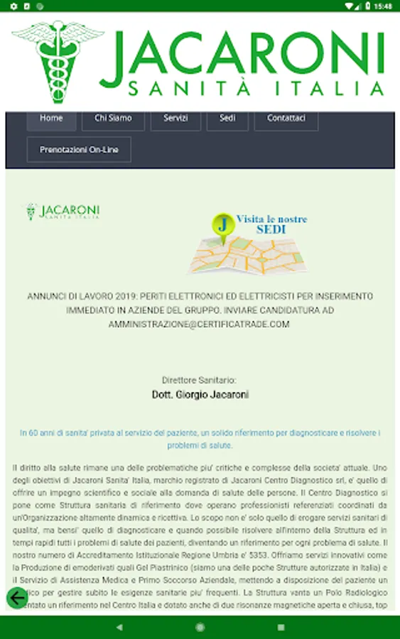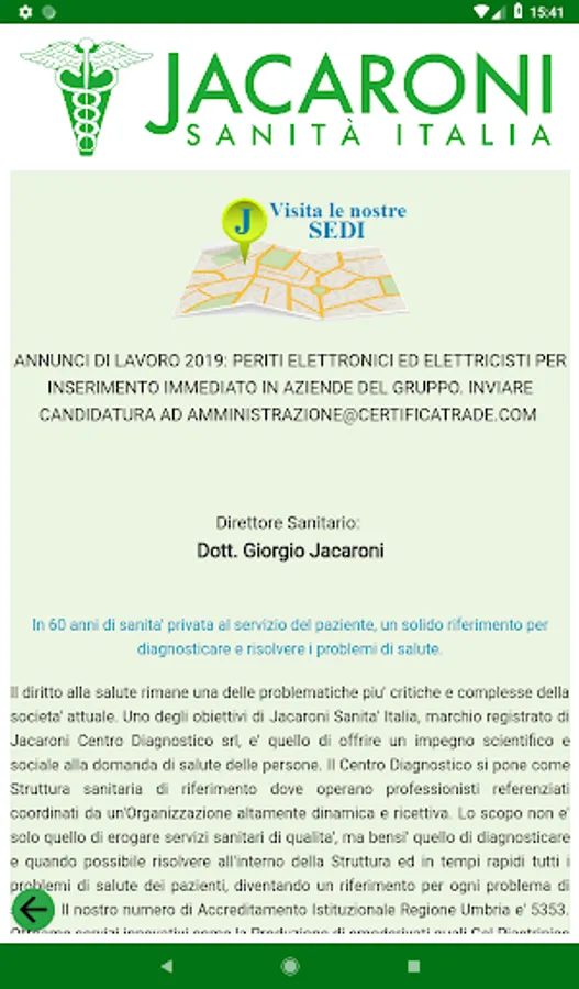 One of the objectives of Jacaroni Sanità Italia, a registered trademark of Jacaroni Centro Diagnostico srl, is to offer a scientific and social commitment to people's health needs.