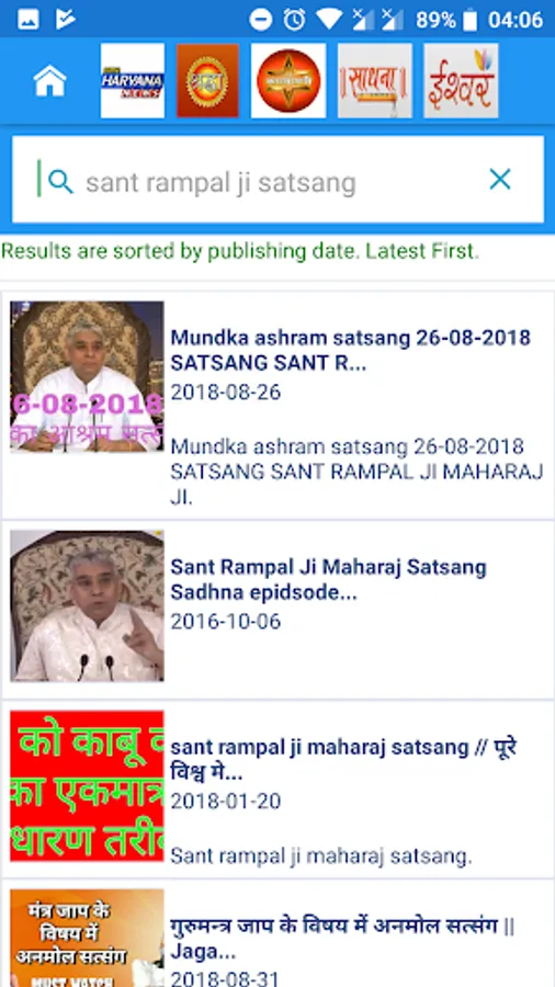 It has satsang videos (Spiritual discourse) by Satguru Rampal Ji from YouTube.