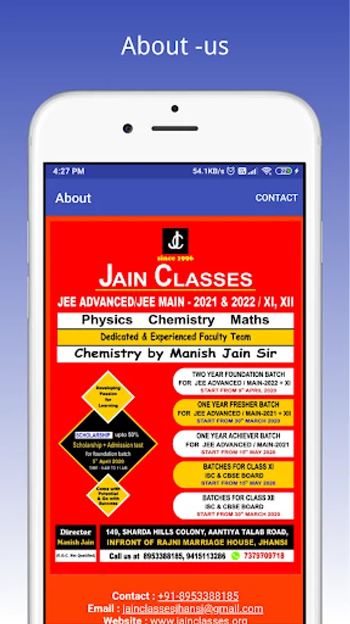 149, Sharda Hills, Aantiya Talab Road, Infront of Rajni Marriage House, Jhansi (U.P.). Pin Code: 284001