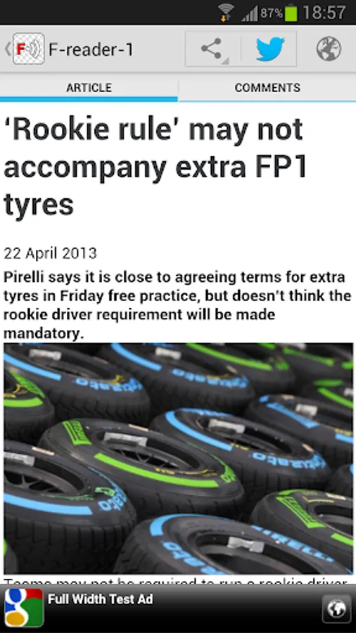 Freader1 scans rss feeds from the major F1-centered websites such as PlanetF1 or Autosport and brings you the latest Formula 1 racing news in one place. Freader1 also features a built-in browser with smart view mode that cleverly displays the information that you want to read.