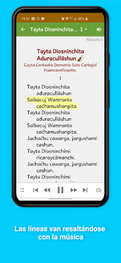 "Tayta Diosninchita Alliman Ćhuralläshun" is the chorus (songbook) of the Panatahuas (Panao Quechua). For more than 40 years, we have sung these songs at services, vigils, anniversaries, and other celebrations. Now it is available in digital format for Android phones.