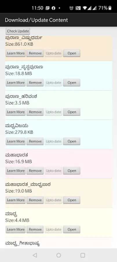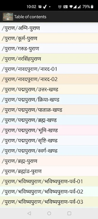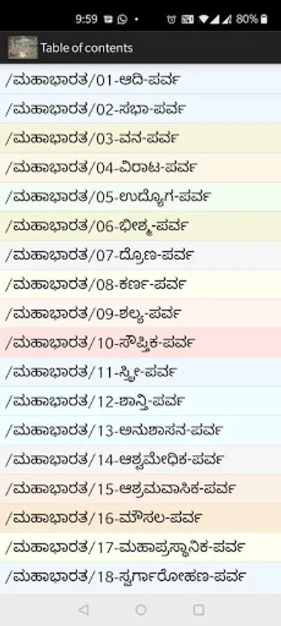 5. The Table of Contents shows the complete list of texts that you have downloaded