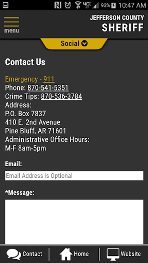 The app has public information for press releases, inmates, most wanted, sex offenders, special alerts, and FAQ's. Crime tips and contact us messages can be sent to the Sheriff's Office.
