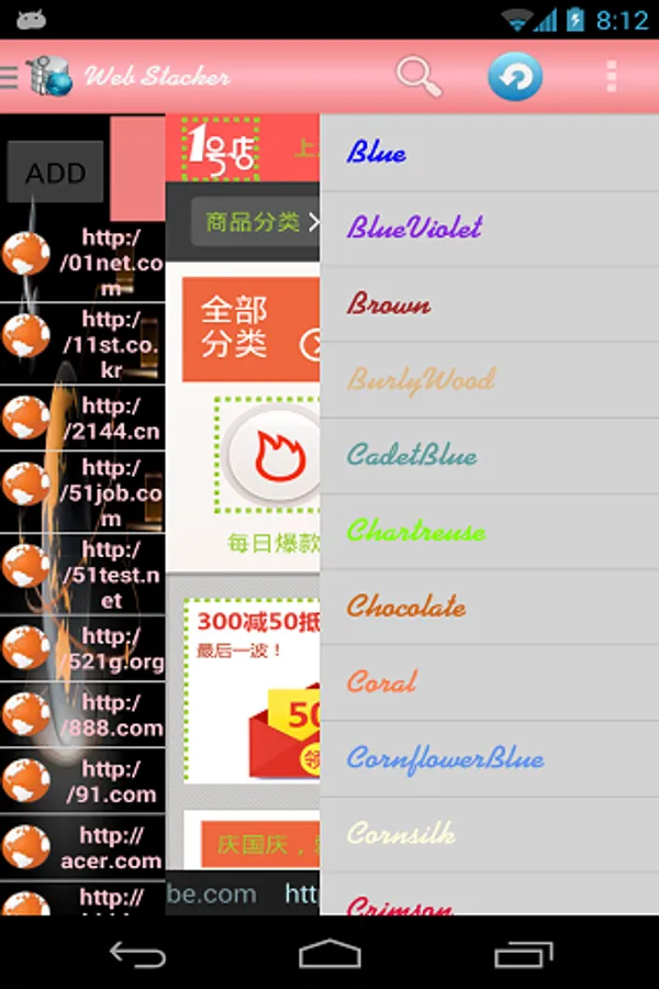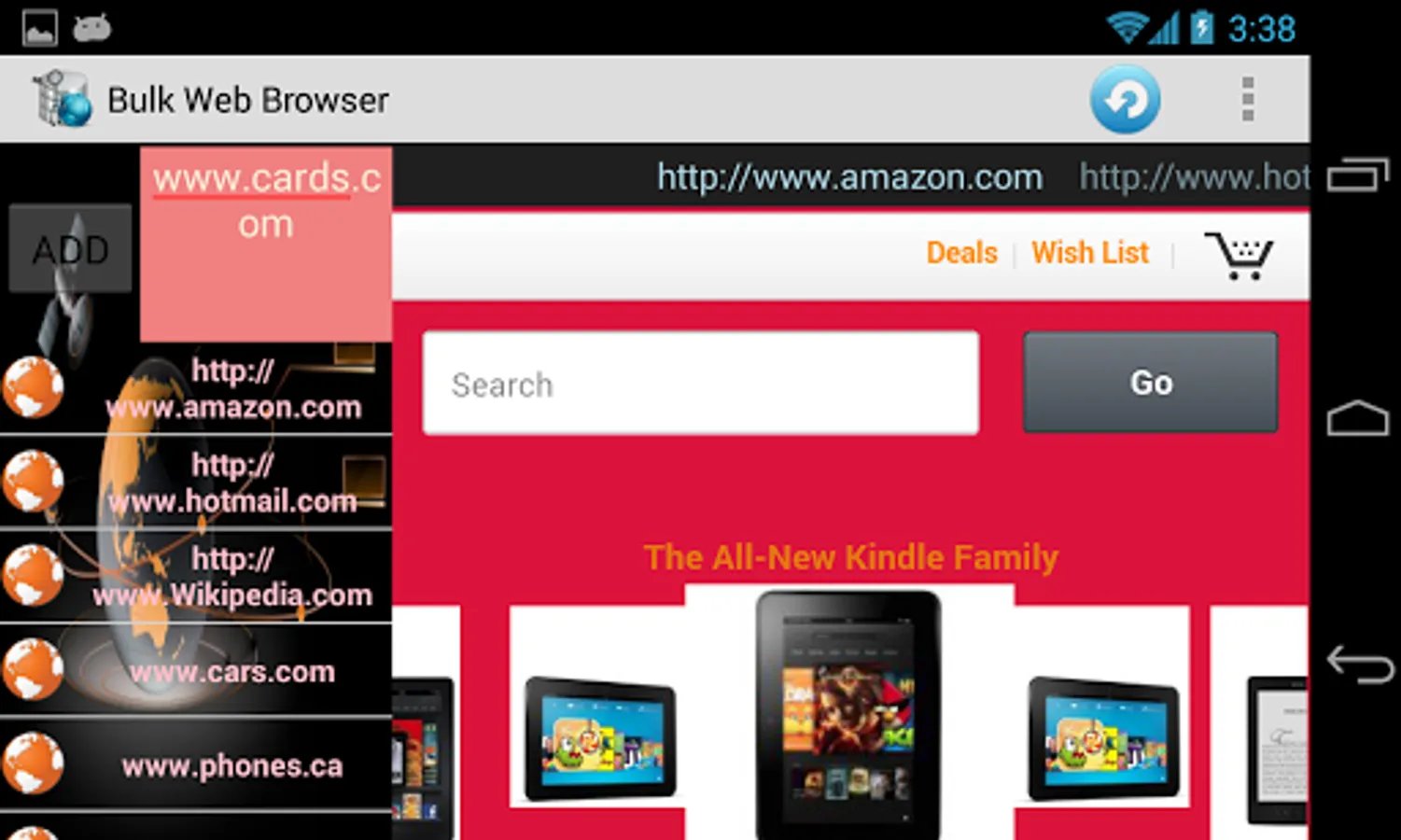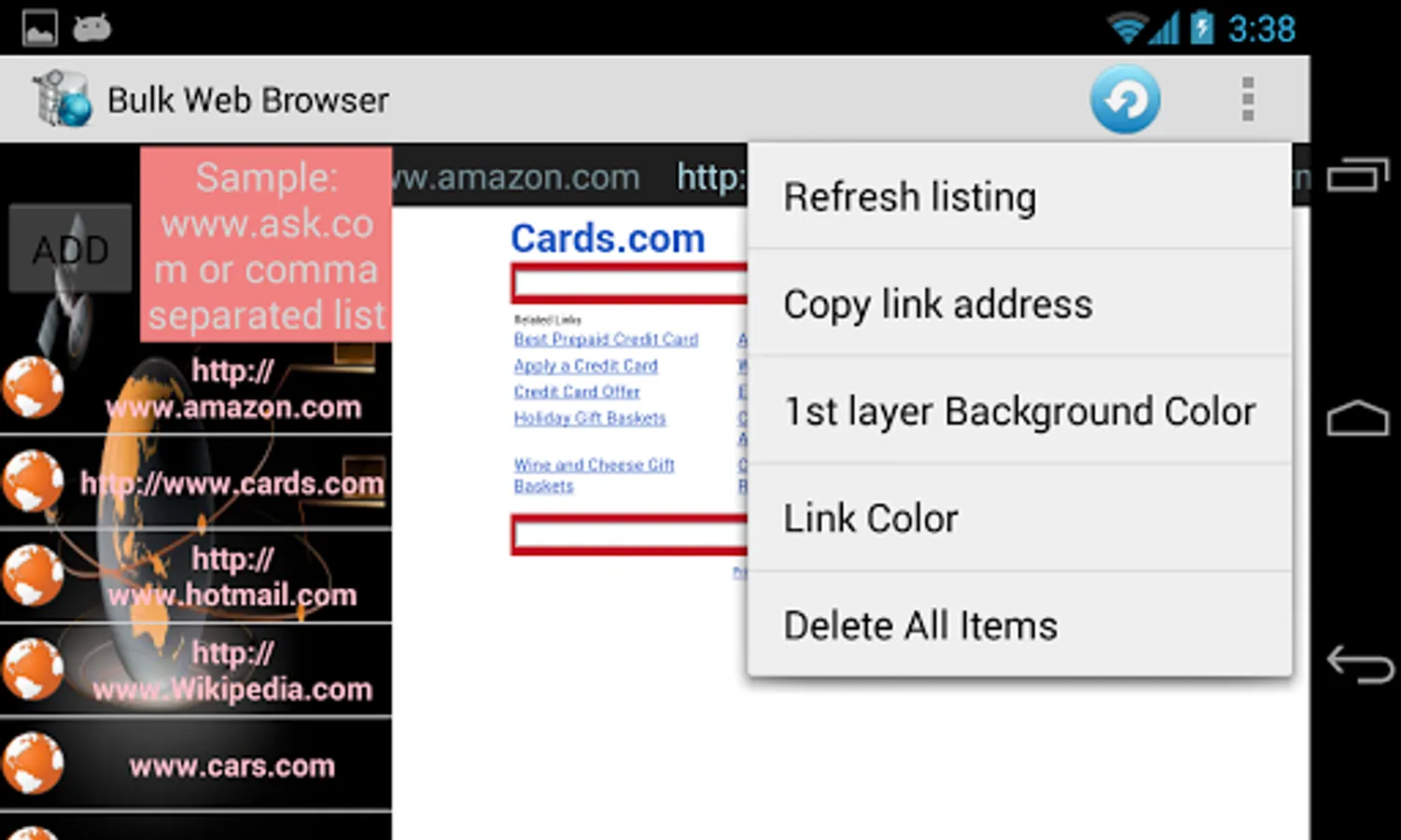 Load many websites at once. Modify background and web link colors for easier reading. Web Stacker allows you to add a very large comma separated list of websites and then surf them all at the same time. The app is also optimized for tablets allowing for versatile control.