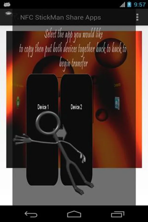 Introducing an easy and fun way to share the apps on your phone. Let StickMan share your apps for you. Stickman will use NFC's Android Beam (or S-beam) to bring the recipient to the Google play store.