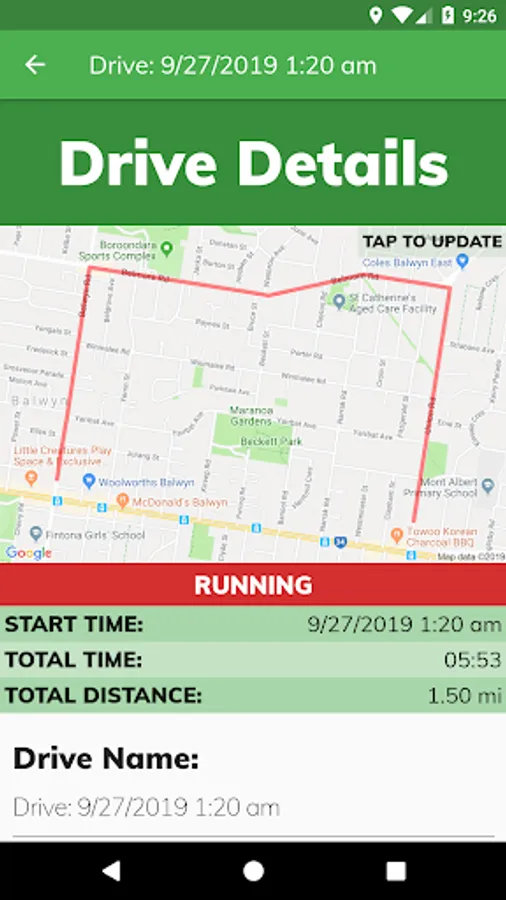 There are many reasons you might want to track your driving. This app doesn't care. it just lets you track it. Use this app to keep track of the times you are driving, where you are driving, and how many miles you travel.