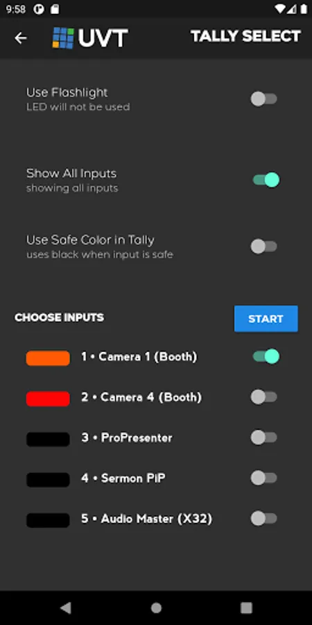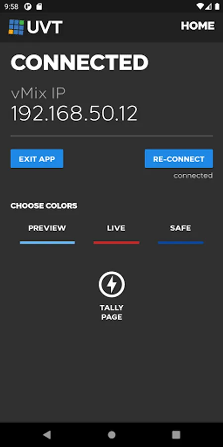 This app turns any Android Phone into a graphically beautiful tally indicator for live production when using vMix. Unlike the web page interface built into vMix, this app gives you additional features:
