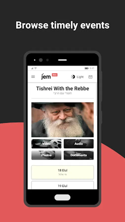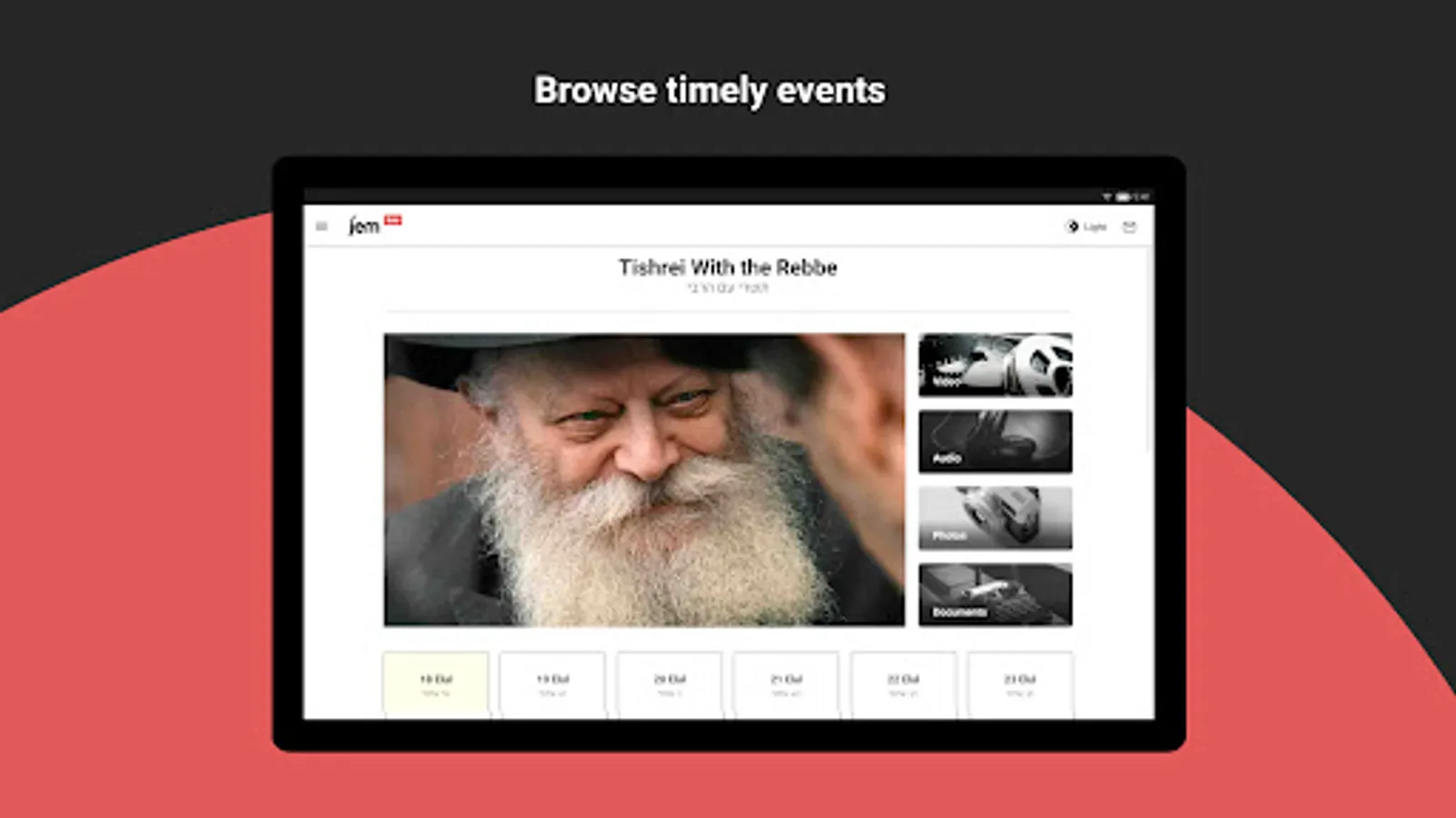 Be uplifted as the Rebbe teaches a plethora of timely topics with practical life lessons; listen in as the Rebbe advises individuals to navigate their challenges – whether in parenting, business or relationships. Join thousands as they are swept up in the notes of a heartfelt Chasidic melody, browse meticulously-restored archival photos, or experience a full-length Farbrengen (Chasidic gathering and public address) with the Rebbe.