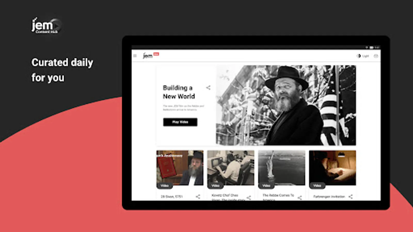 The JEM Content Hub will enable you to learn and be inspired directly by this master teacher of Torah and its application in daily life. Browse, search and navigate curated film, video, and audio recordings of the Rebbe, alongside first-person stories from JEM’s acclaimed “My Encounter with the Rebbe” oral history project.