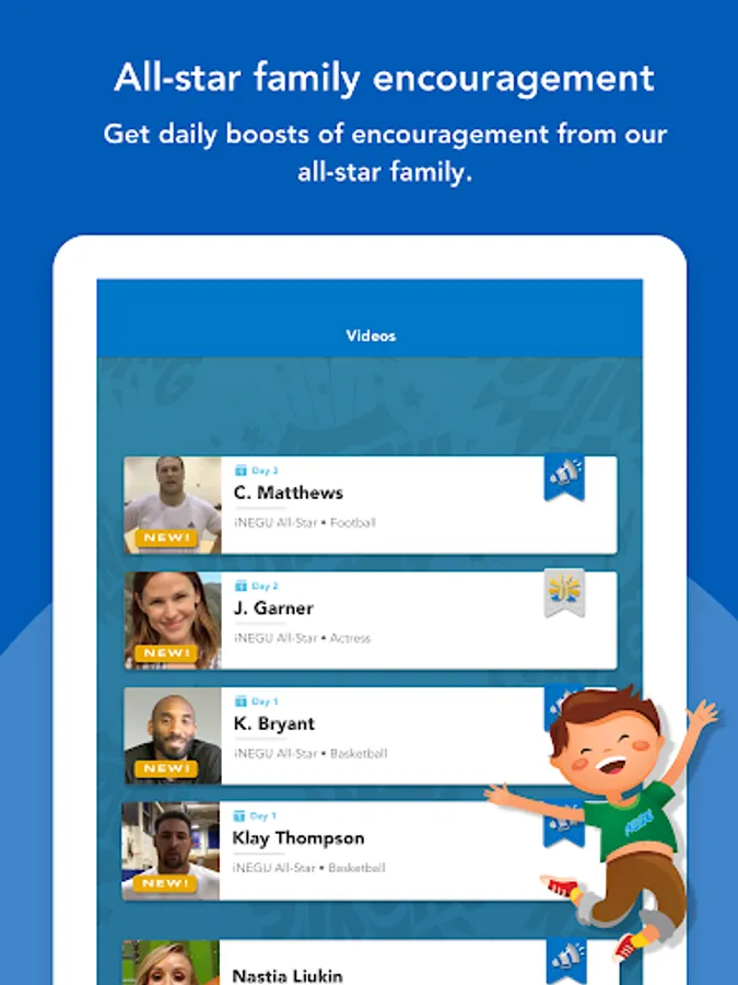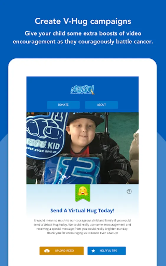 iNEGU is inspired by twelve year old Jessie Rees and her mission to encourage every kid fighting cancer to NEVER EVER GIVE UP (aka: NEGU). iNEGU connects families impacted by childhood cancer with encouragement and resources to NEGU. Each day kids, sibs and parents are encouraged through custom video messages to NEGU by celebrities, professional athletes, Olympians, musicians and members of the Jessie Rees Foundation. iNEGU also offers optional daily boosts of hope & prayer from Jessie’s father, Erik Rees. Families can also get connect to thousands of resource providers though iNEGU to help them in their courageous fight.