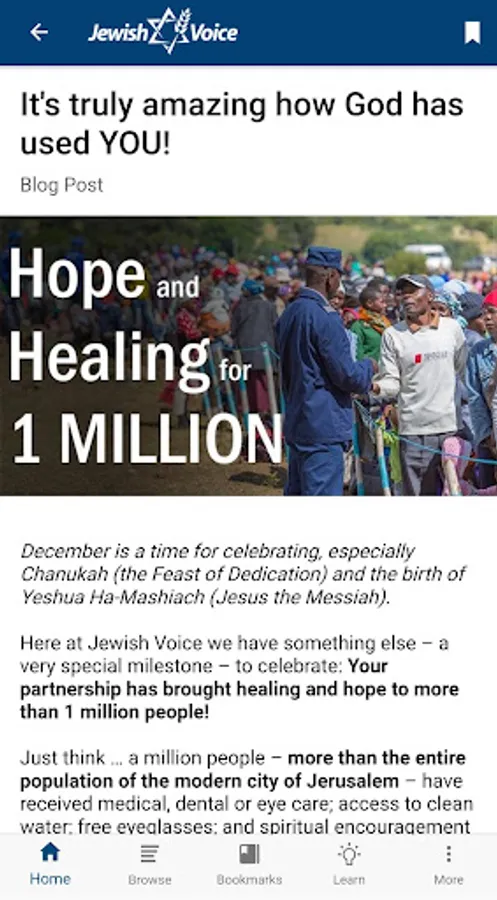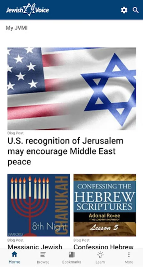 Now all of your favorite content is right in the palm of your hand! It’s a customized experience just for you. You’ll select your favorite topics, bookmark top articles, stay up-to-date on important events in Israel, view a recent installment of “Jewish Voice with Jonathan Bernis,” or browse our numerous blog posts to learn more about Messianic Judaism and other topics.