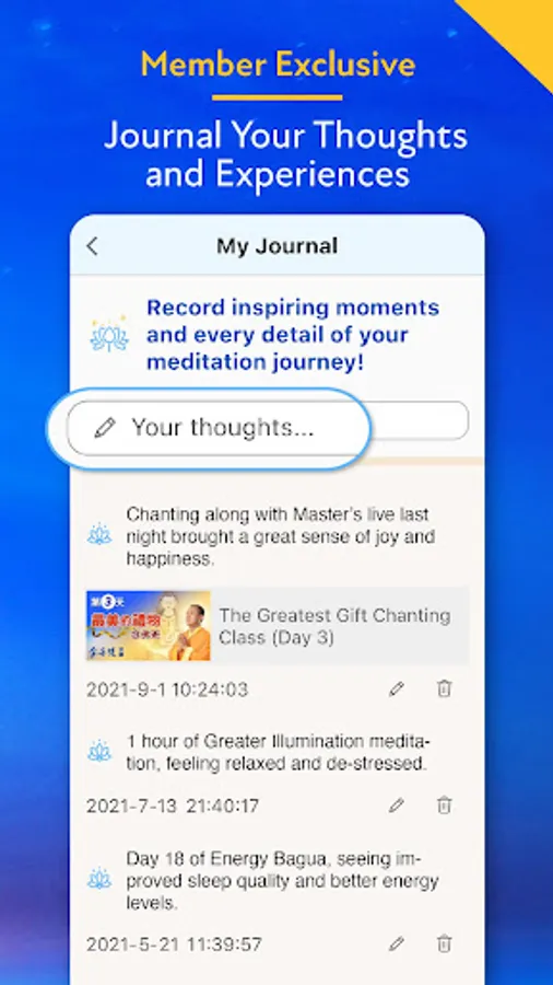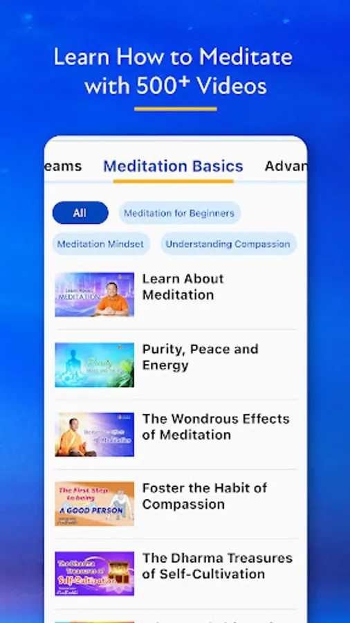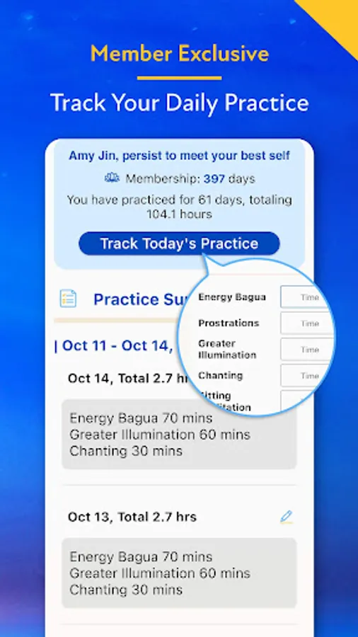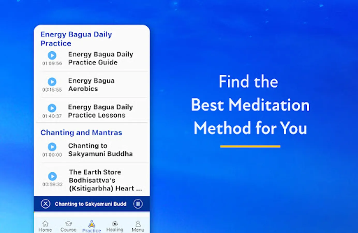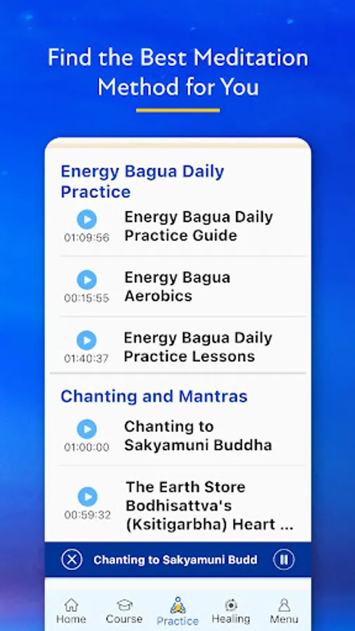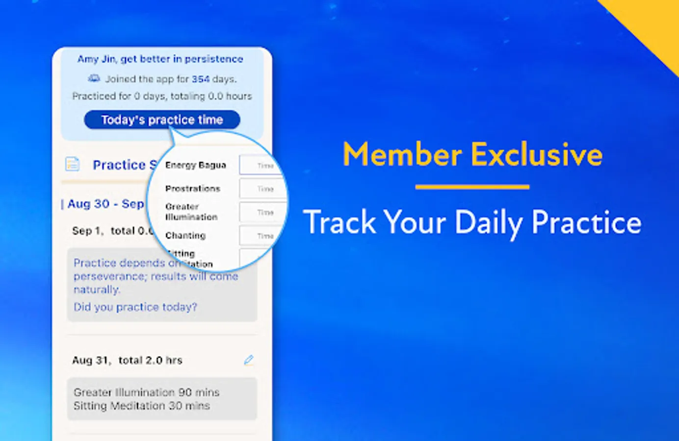 The APP includes 3 sections: Classroom, Practice and Energy Blessings