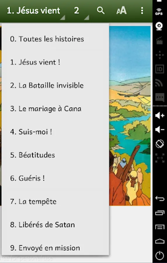 The application features 34 stories about Jesus chosen from four gospels of the Bible.