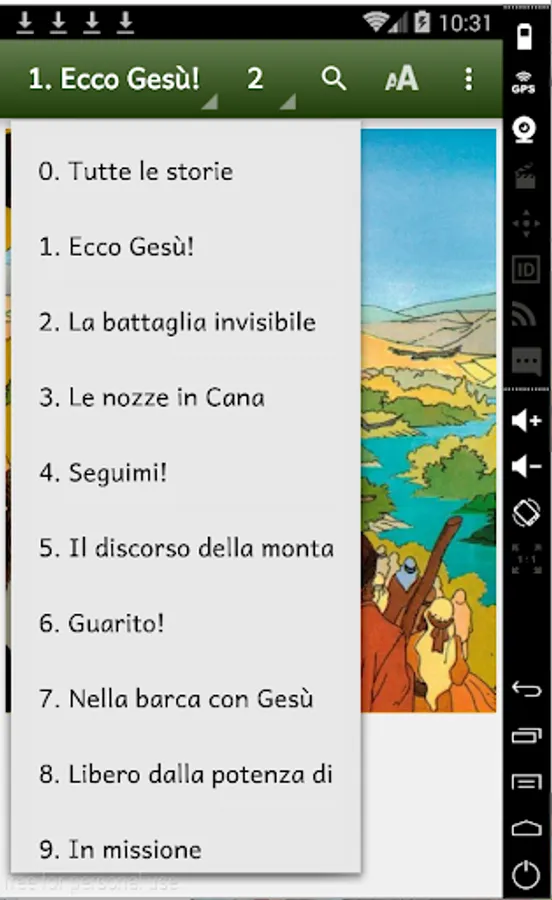 The application features 34 stories of Jesus from among the four Gospels of the Bible.
