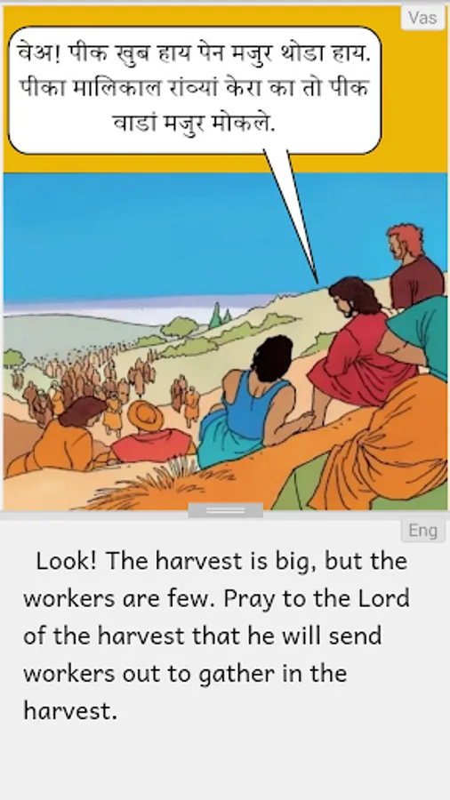 The app has 34 stories about Jesus chosen from the 4 Gospels of the Bible.