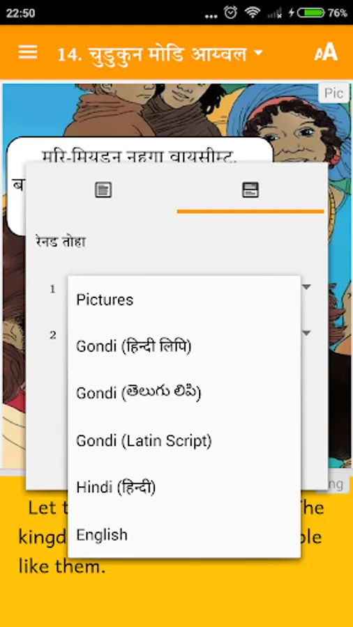 This app also has translations into Hindi and English.