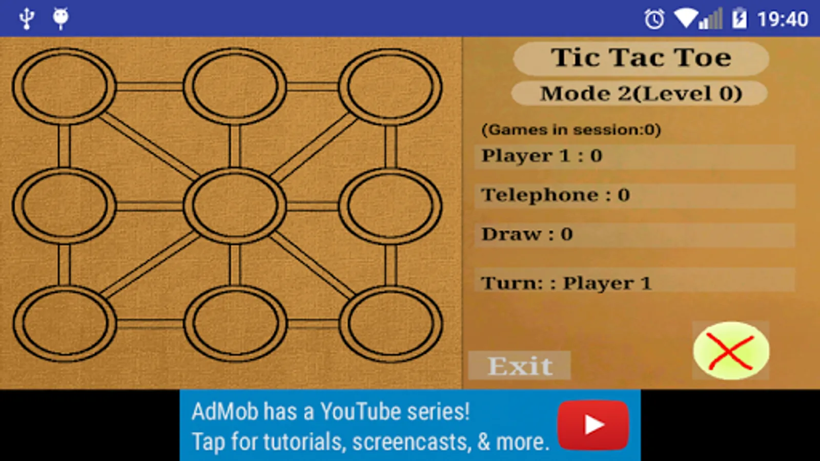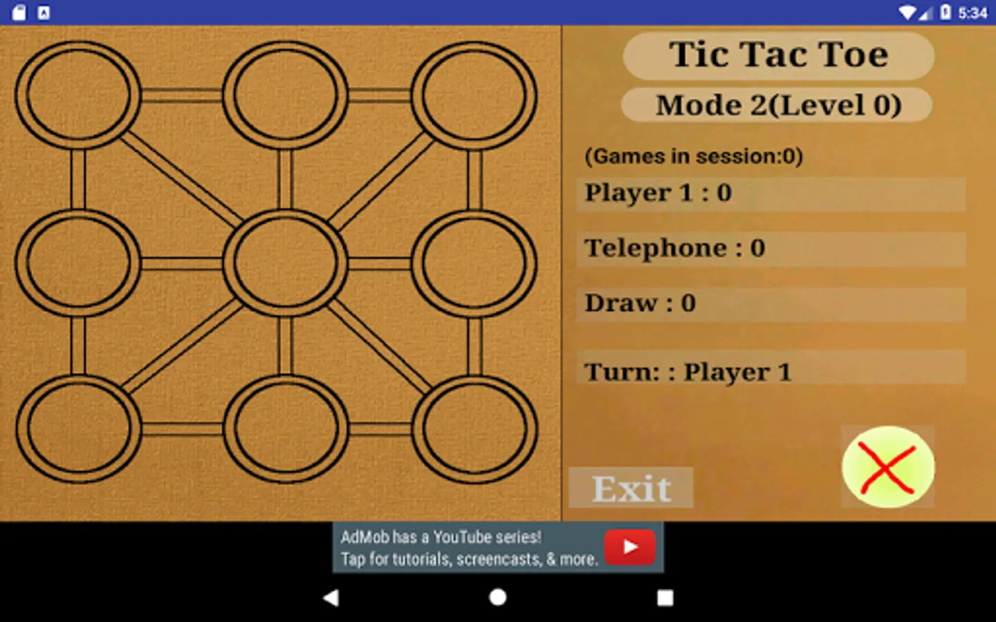 Tic-tac-toe: It has two game modes. The first one provides nine pieces and the second 6 that can be moved one once placed.