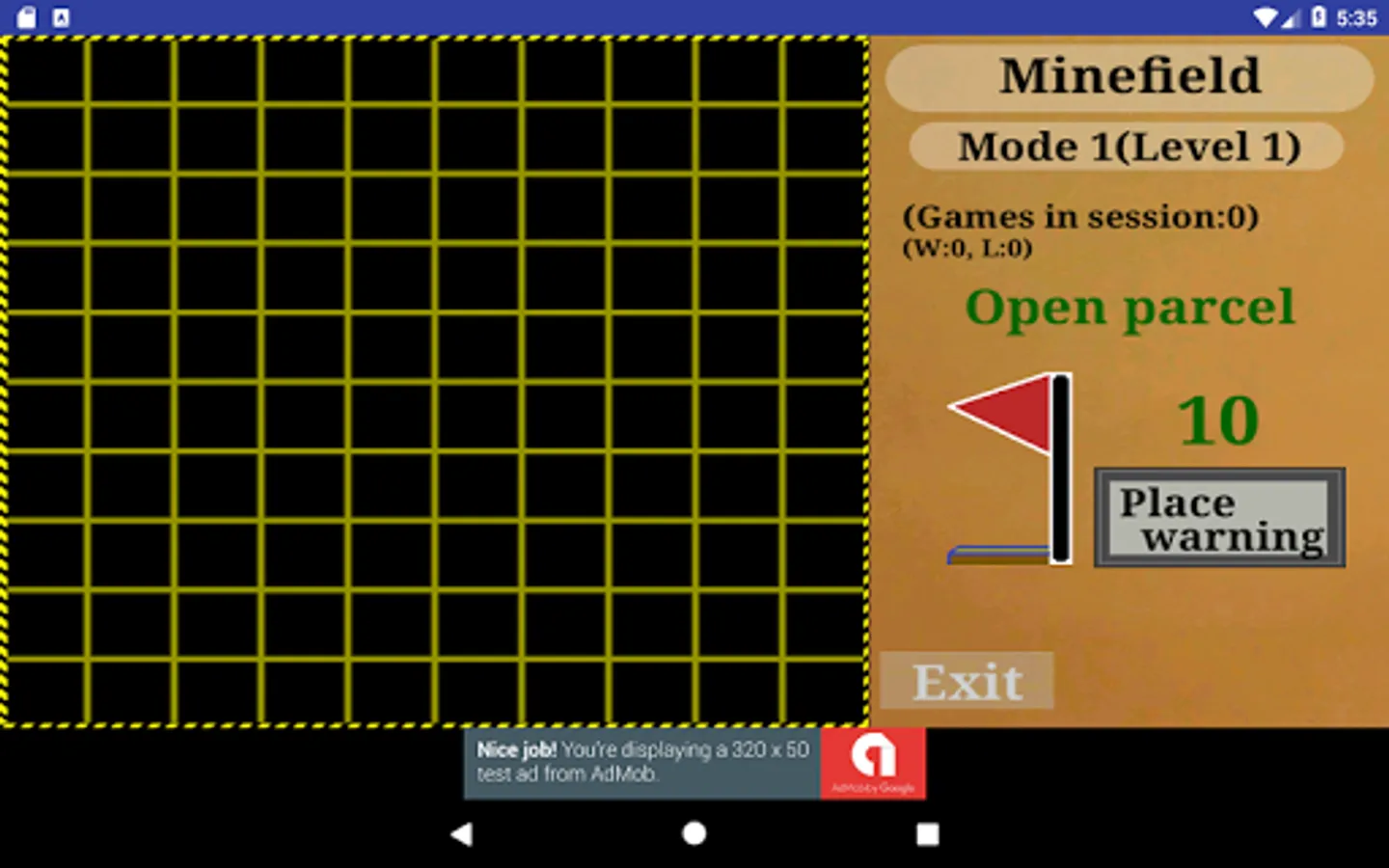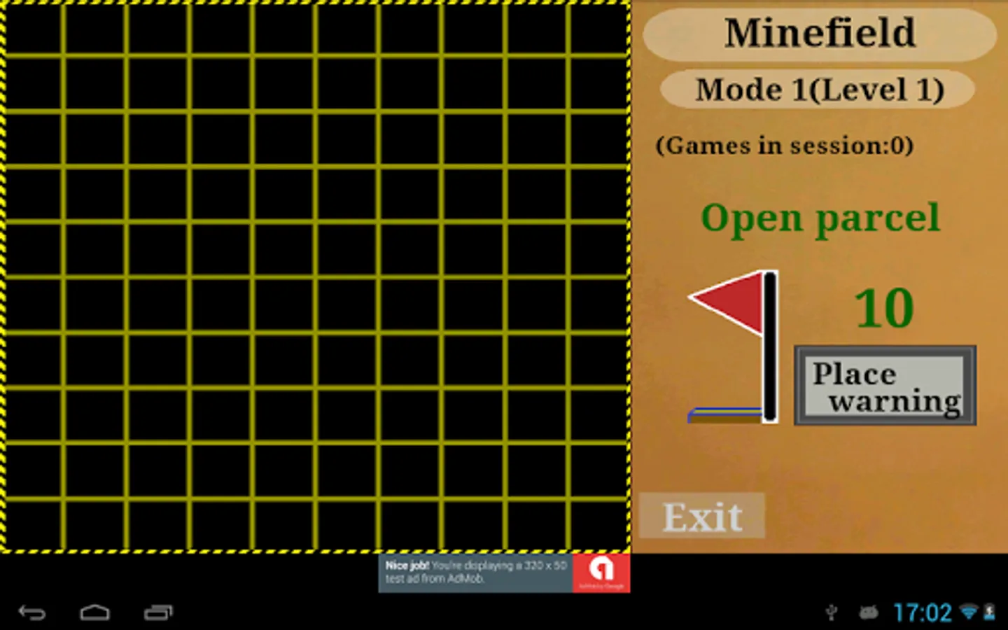 Minefield: It also has two game modes. In the first one must open all the parcels without treading any mine and in the second it is necessary to arrive from the square of exit to the one of arrival without treading any mine.