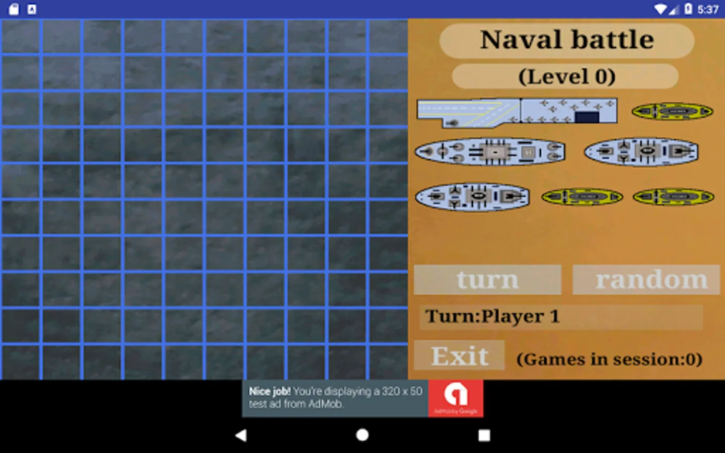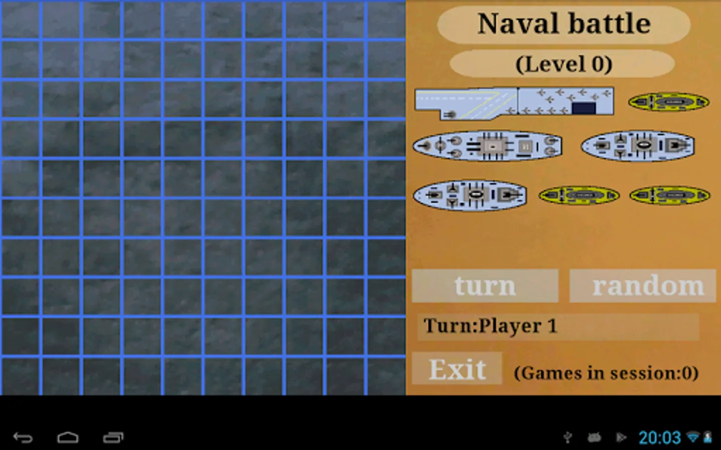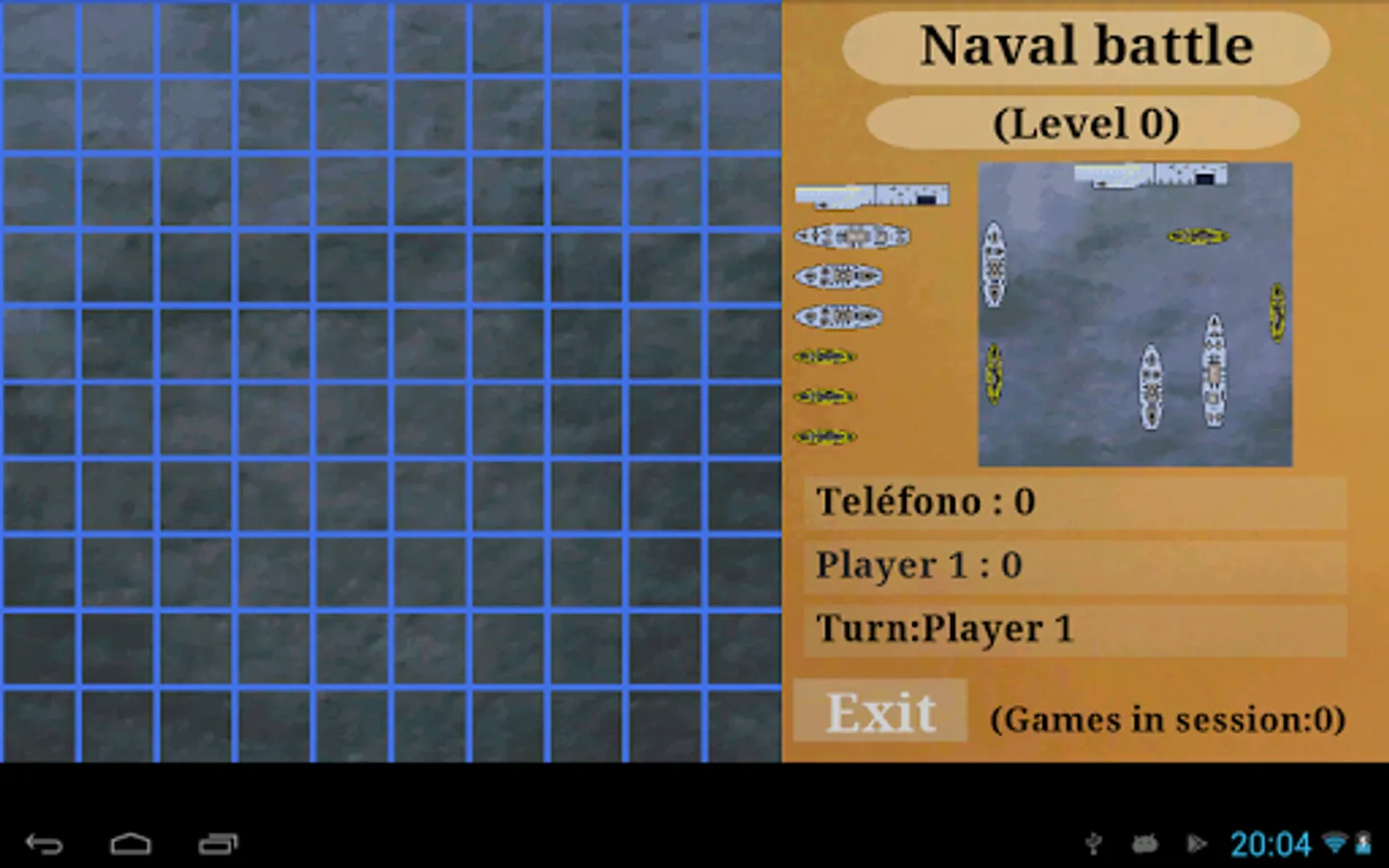 Naval battle: 7 ships to place in a sea of 10x10 sectors. Shoot blind and hope to have more success than your rival. Simple and direct.