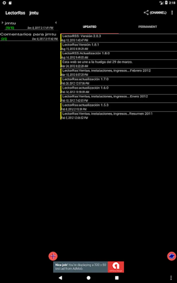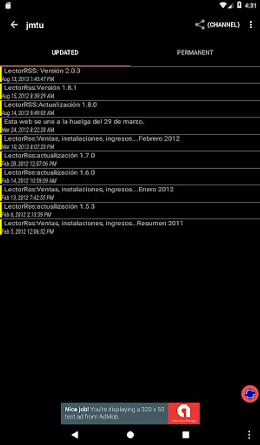 06/17/2013 Version 2.0.1: Improved to search RSS feeds in the header html and bug fix that erased the first channel listed at the delete the folder "Nuevas". No entry in blog.