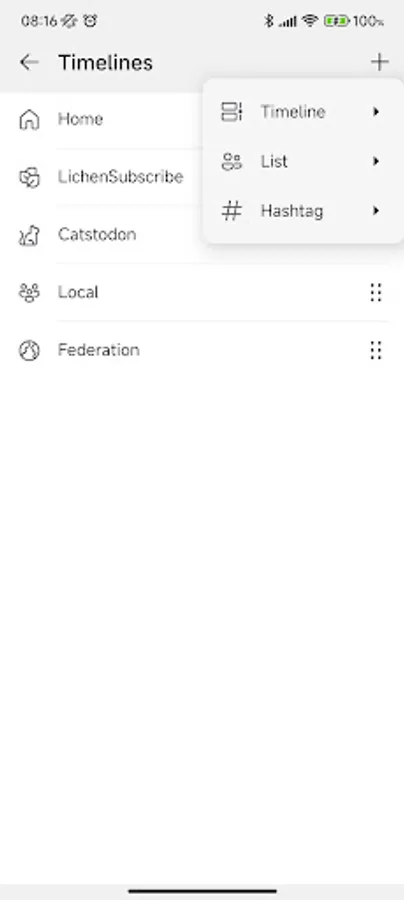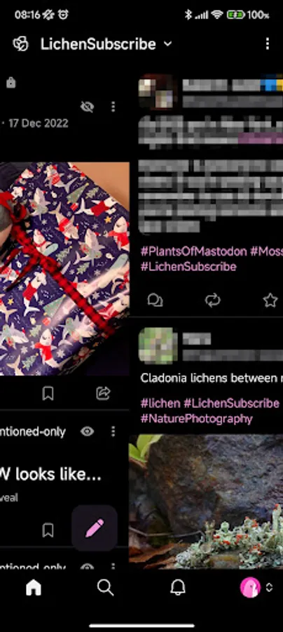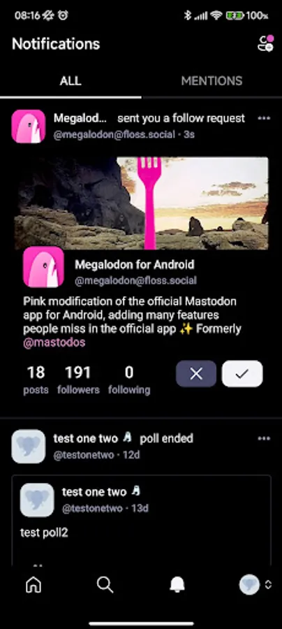 - Custom timelines: Pin any list or hashtag to your Megalodon’s home tab to simply swipe between your favorite topics and people!