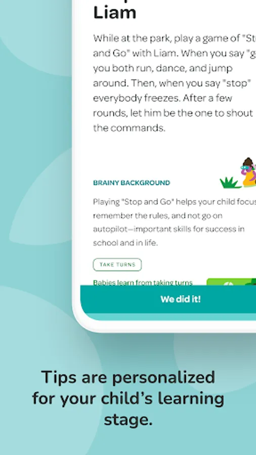 - There’s brain science behind every Vroom Tip – we share the why behind what your child is learning.