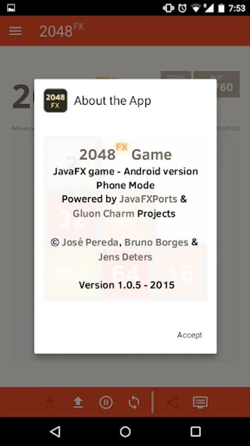This 2048FX puzzle game is based on the original game by Gabriele Cirulli http://gabrielecirulli.github.io/2048/ and on the Java 8 version done by Bruno Borges and José Pereda https://github.com/brunoborges/fx2048