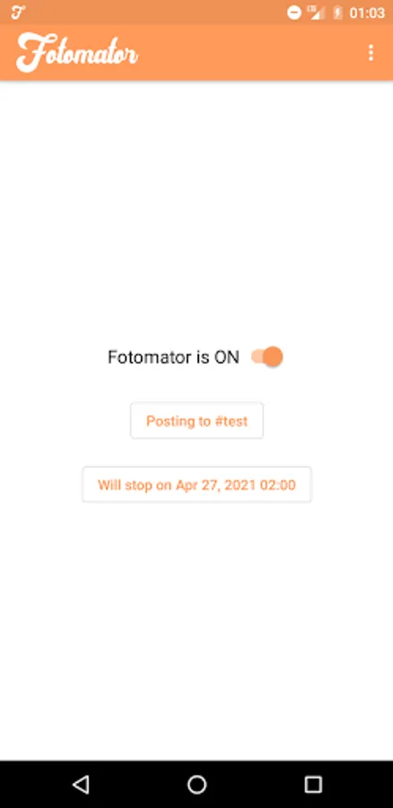 Optionally, a date/time can be set to automatically turn off Fotomator - to be sure not to post photos after the event is over!