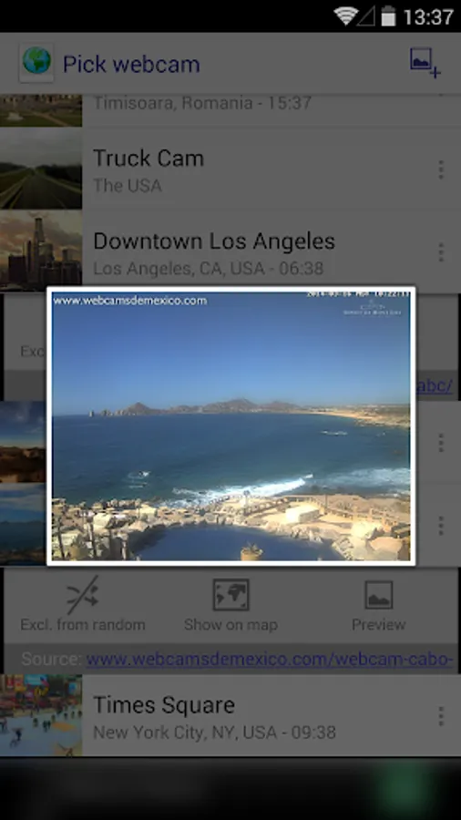 You can choose a specific cam or select random mode to be surprised at every refresh.