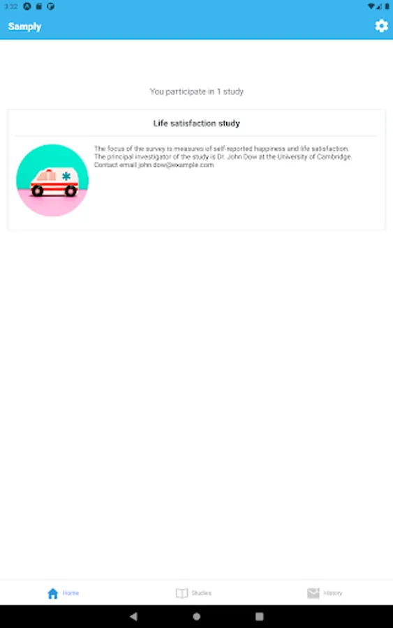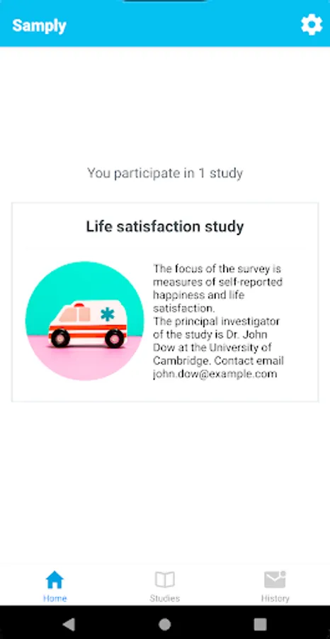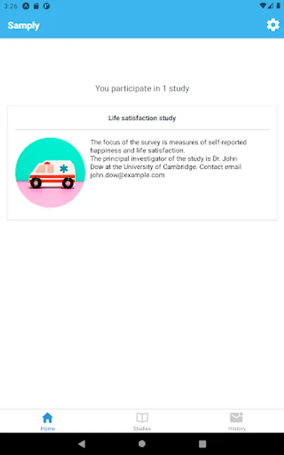 Samply supports experience sampling, ambulatory assessment and diary studies. With this mobile application, you can participate in studies created by researchers. After joining a study, you will receive notifications inviting you to respond to a survey or an online experiment. Samply is developed by the research group iScience at the University of Konstanz in Germany.