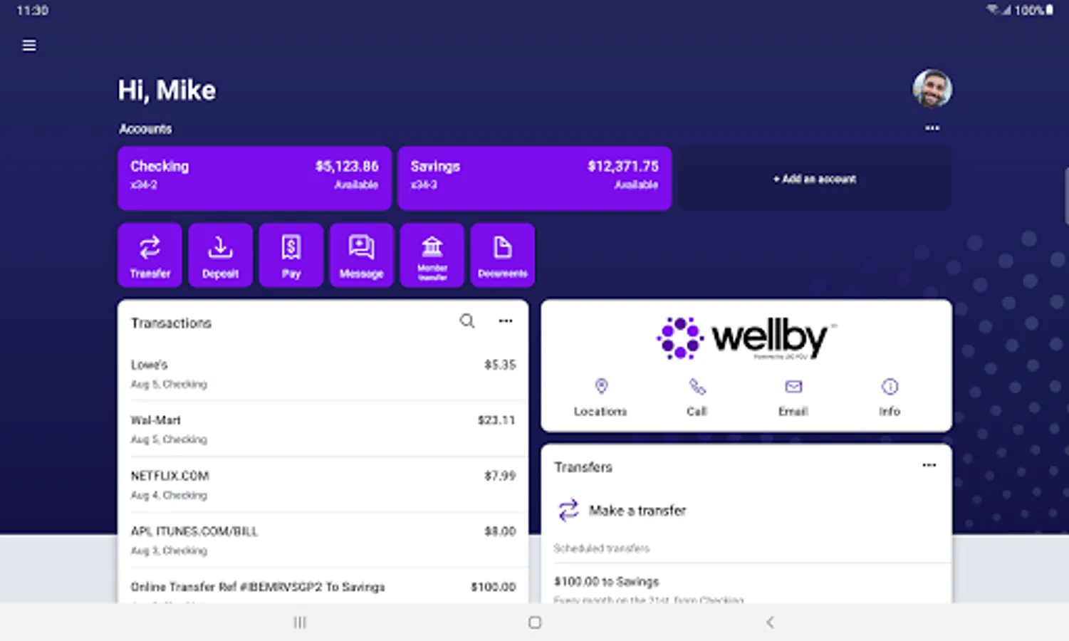 The power to take charge of your finances, right at your fingertips. The Wellby Mobile App offers convenient, secure banking while you’re on the go. With 24/7/365 access, you can manage your finances when and where you need to from your mobile device.