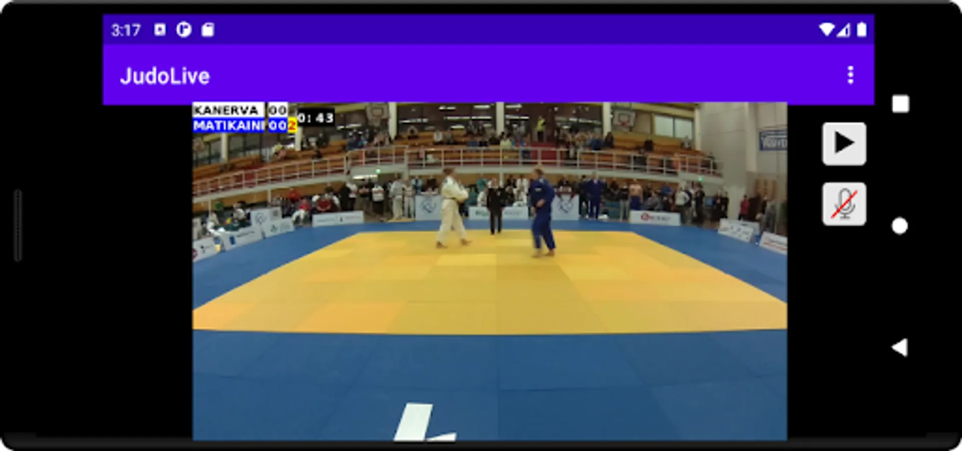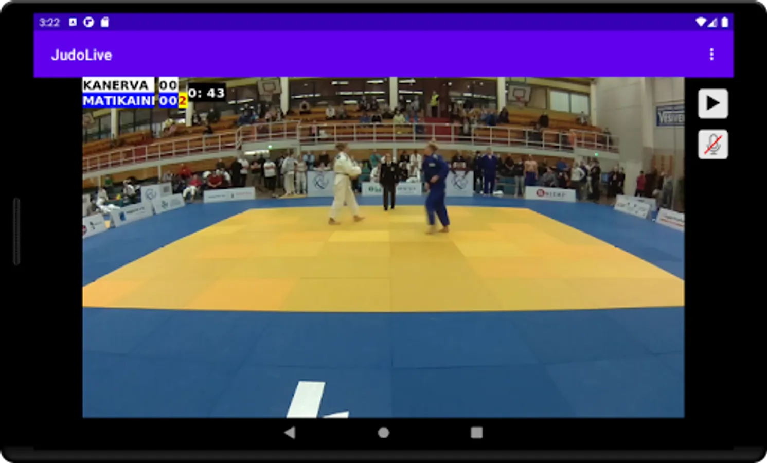 JudoLive connects to a JudoTimer and receives information about the current competitors, clocks, and scores. It overlays the information on a live video stream. Stream destination can be any RTMP server.